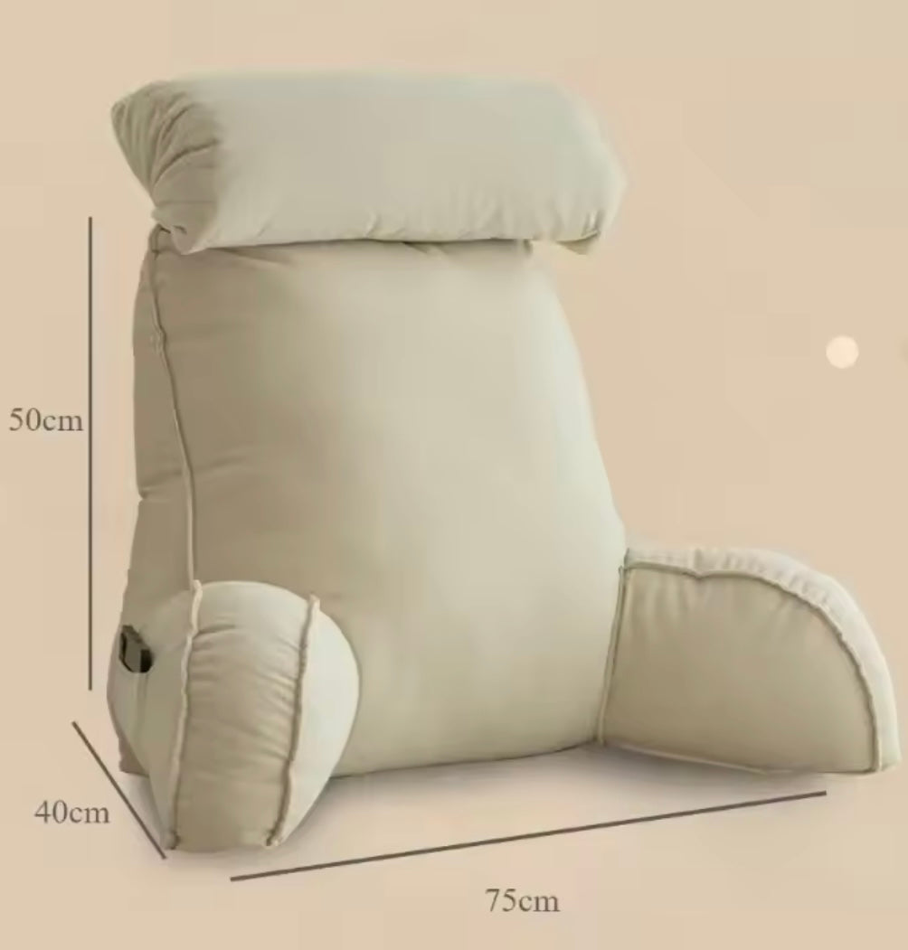 הכרית מעניקה תמיכה יציבה ונעימה לכל אזורי הגוף, מה שמאפשר ישיבה ממושכת ללא לחץ או עייפות. בזכות הגב הגבוה, תמיכת הצוואר והידיות המרופדות, הקריאה הופכת לחוויה נינוחה במיוחד — בין אם במיטה, על הספה או בפינת מנוחה.