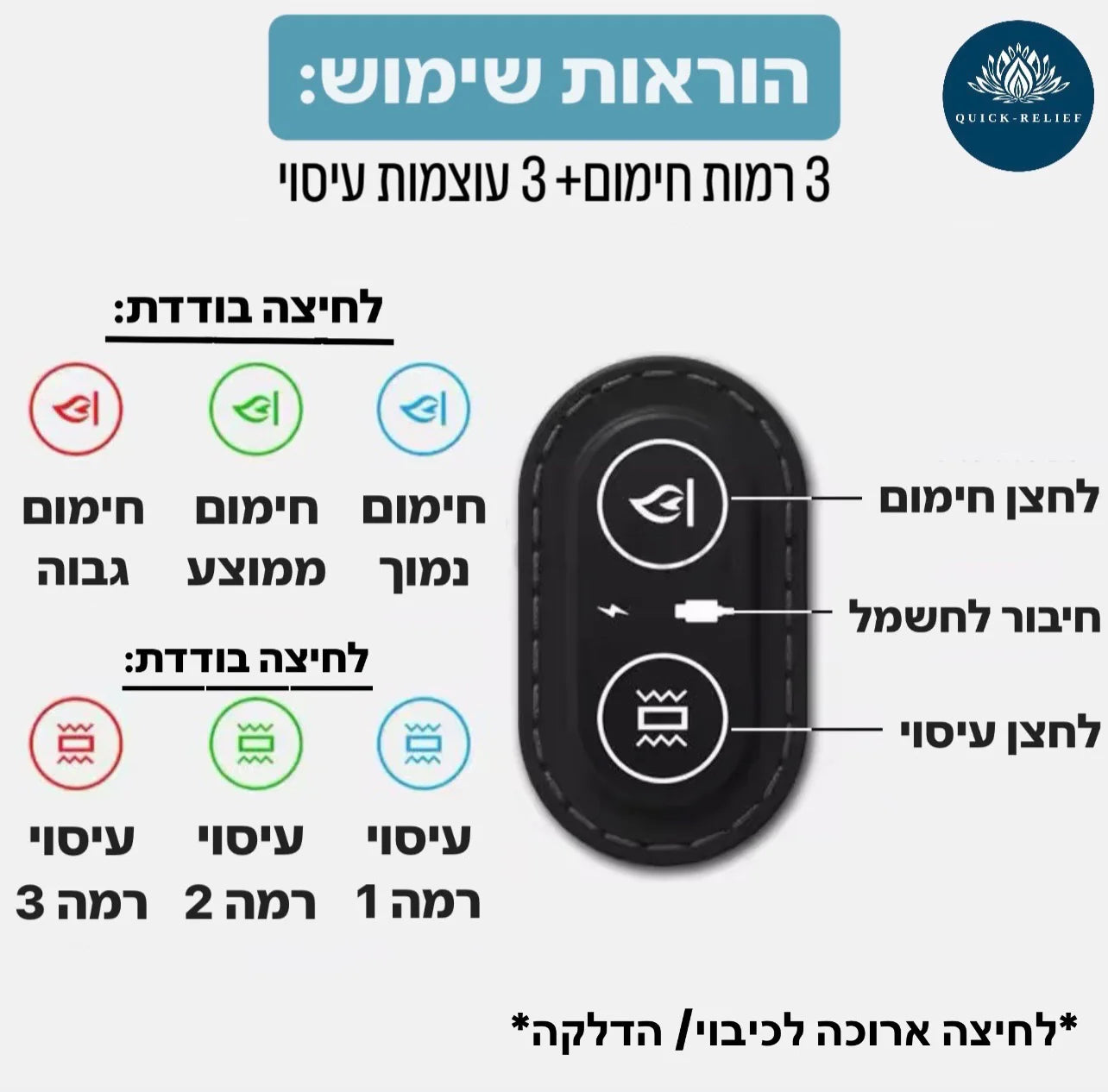 שילוב של חימום עוצמתי ועיסוי ברטט, יאפשר רגיעה לגב תפוס ושחרור כאבי גב במיידית.
