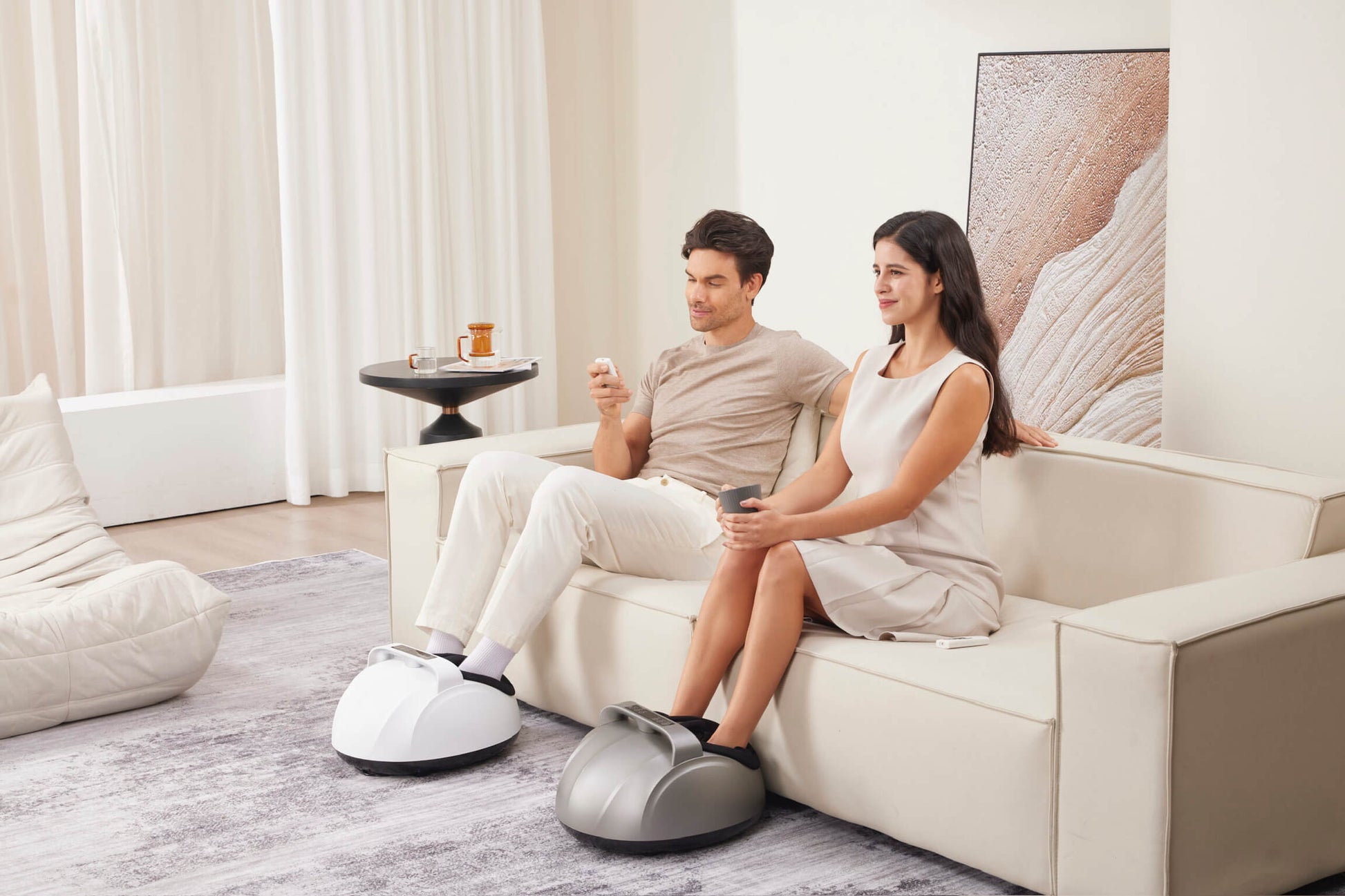 עיסוי באמצעות לחץ אוויר בקרסוליים המדמה עיסוי ידני מפנק המפחית נפיחות ומרכך את השרירים.