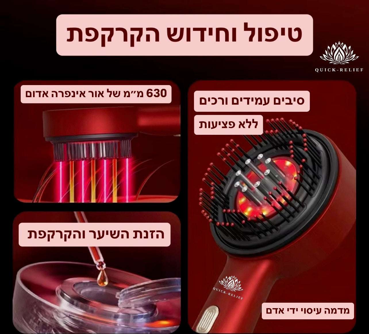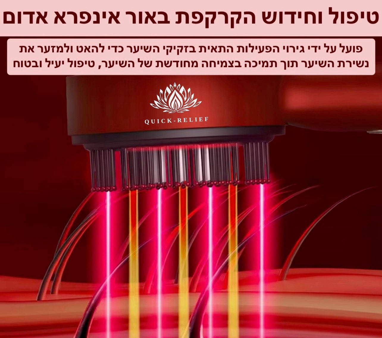 טיפול באור אדום ממריץ את צמיחת השיער על ידי הגברת זרימת הדם לזקיקים, מה שמוביל לשיער עבה יותר והפחתת נשירת שיער, ע״י חידוש התאים המתים. בעזרת שימוש עם שמן לשיער/לקרקפת- המכשיר משפר את חוזק השורש, תומך בהתחדשות תאים, ומשפר את ההשפעות של טיפולי שיער לבריאות הקרקפת.