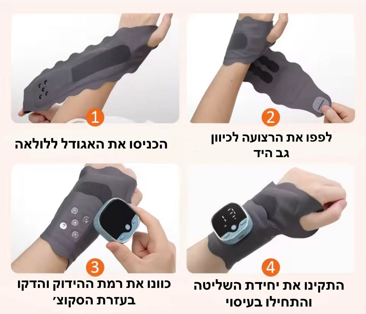 הלחיצות והחימום פועלים על נקודות מפתח בכף היד ומשחררים עומס מהגידים ומהשרירים העמוקים. רבים מהמטופלים מדווחים על הקלה כבר לאחר השימוש הראשון, כולל הפחתת תחושת נוקשות ושיפור בתנועה.