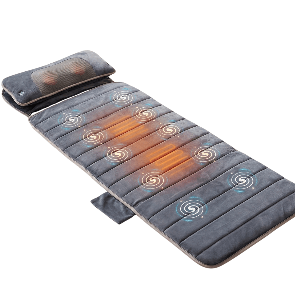 מזרן העיסוי כולל עיסוי שיאצו, עיסוי רטט, וחימום, לטיפול מקיף לכל הגוף ולהפגת מתחים, כאבי צוואר וכאבי גב. המזרן משלב 10 מנועי עיסוי חימום ורטט + כרית עיסוי שיאצו, ו8 שכבות חימום עד 55 מעלות!